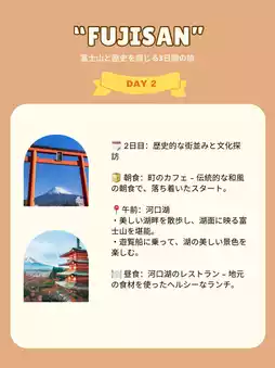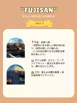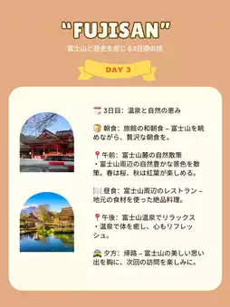 🚖 Evening: Stroll around the foot of Mt. Fuji – Relax at a hot spring inn in the evening.