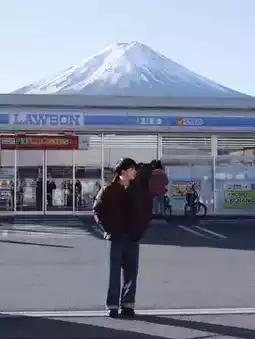 A simple convenience store has become a very popular location because it has a large "Mt. Fuji" as a backdrop that fills the frame with nothing blocking it.