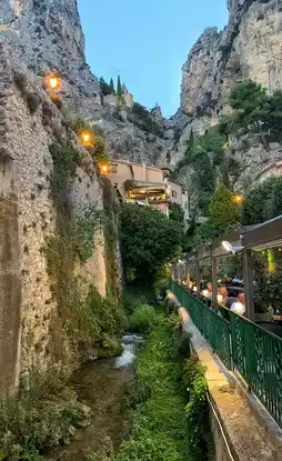 P3,9,11,18: Moustiers-Sainte-Marie (what a long name) is probably the most magical mountain village in Provence. It is nestled between rocky cliffs, with houses built on the slopes and waterfalls flowing through. The scenery is magnificent, and it is famous for its ceramics and historic buildings.