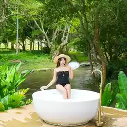 Only four villas nestled amidst nature, this streamside villa offers two types of accommodation. The first is decorated with bamboo, giving it a Balinese feel like a jungle hut. The second is decorated in a chic, modern style with a unique identity. Each villa features a riverside jacuzzi. Surrounded by nature, it offers shady, quiet, and privacy, with a stream flowing year-round. Free kayaks and paddleboards are available. Board games are also available in the rooms. 🚣🎲🎮