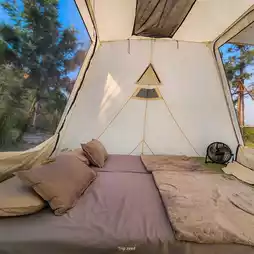 We used the tent service with bedding and all the camp equipment. When we arrived, they had already set up the tent for us.