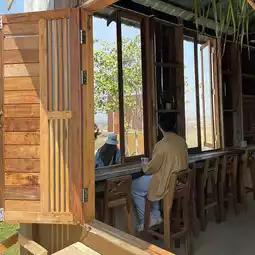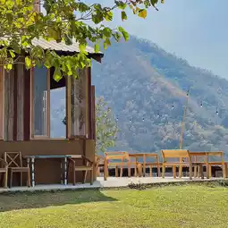 Baan Rai Lom Bon, a feel-good place that is both a cafe and a camping ground. A wooden barn-style house on a hill surrounded by mountains, perfect for taking some chill photos. 🌳✨