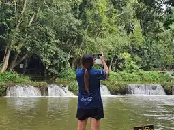 We went to the waterfall around 3:30 PM. We intended to find a place to park the car but found a waterfall on the way so we stopped by. There weren't many cars when we went in. They might have been arriving since noon and then they gradually returned. The water at this time might not be very clear, but there were quite a few people playing. You can eat at the lower level. We also bought water from the park, but after drinking, you have to keep it to prevent wild animals from eating our food and they won't want to eat it. It also helps to preserve the ecosystem. #Saraburi tourist attractions #Saraburi #Saraburi is worth visiting #Get a discount without relying on luck