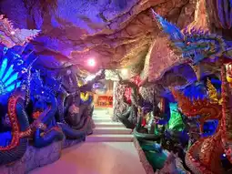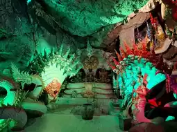 📍Entering the cave, you'll find the Naga Cave, which features Naga statues in several corners. It's beautifully lit, and visitors can enter to pay their respects and pay homage. The cave is not very large, and there are lights along the way.