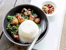 • My boyfriend's dish was the vegetarian crispy pork belly with basil. It was rich and delicious. And the drinks were all delicious. The prices are listed in the last photo. Check them out!