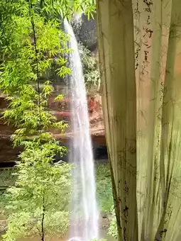 The core attraction, perfect for photos, combining cliff waterfalls with Danxia landforms. On sunny days, you can even see a rainbow under the sunlight.