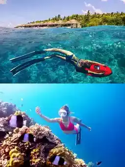 🌊 Snorkel with turtles: Abundant fish near the pier & water villas, guides help with photos!