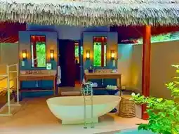 The resort is also home to one of the largest infinity pools in the Maldives, facing the sea. If you love diving or snorkeling, the nearby coral reef is spectacular and easy to reach. There’s also a luxurious spa set in the treetops, which makes the experience even more magical.