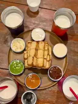 Neung Nom Nua 🍞 A famous shop that you must not miss when you go to Phuket. If you are in Bangkok and go to Banthat Thong, you will see Neung Nom Nua, a big shop with lots of people. The branch in Banthat Thong is the second branch. The first branch is in Phuket. There are a lot of people, but the wait is not long. The food is really delicious. You must drink milk. 🥛 Slurpee Nom Nua is very delicious. Don't miss the bread. It's a shokupan with a dip that you can choose. The custard is also delicious. Another thing I recommend is the sushi. I thought it wouldn't go well, but it was very delicious. Go try it. Pin it. Neung Nom Nua 😋