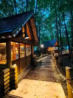 • A warm wooden cafe mixed with a simple Japanese garden with the sound of gently flowing water
