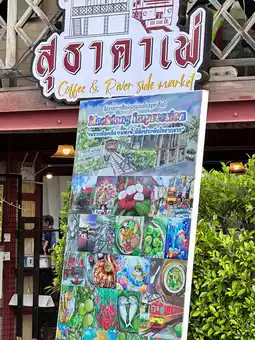The conclusion is, "It hasn't arrived yet!" Asking the locals, they told us that the arrival and departure times are set by the locals, and if you miss a turn, you'll be left waiting in vain. But that's okay, we found another great find: the Mae Klong Riverside Walking Street, right near the train station. The atmosphere is wonderful, it's a relaxing stroll, and there are many cute shops. And the one that caught our eye was...