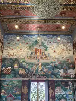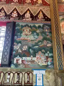 What I must tell you is that the chapel of Wat Chulamani isn't just a beautiful temple. The murals inside are incredibly stunning, stunningly beautiful. The paintings depict the life of the Buddha and various Buddhist stories, meticulously painted by ancient craftsmen. Construction began during the reign of King Rama V and took decades to complete. It's a true treasure that some people who come to worship only for the sake of seeing would be a real shame.