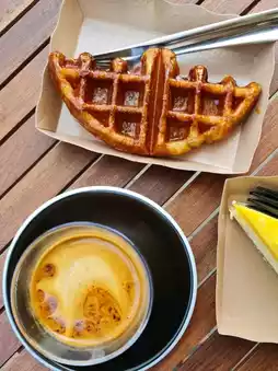 The highlight here is the coffee. They roast their own beans daily, and the aroma wafts throughout the shop. They offer a wide selection of coffee beans from around the world, both Thai and international. If you're not sure where to start, talk to the baristas. They'll recommend a coffee that suits your style. For those who prefer a less intense coffee, try the Dirty. It's absolutely amazing! The strong coffee goes well with cold milk. Or if you prefer drip coffee, they have a wide selection to choose from.