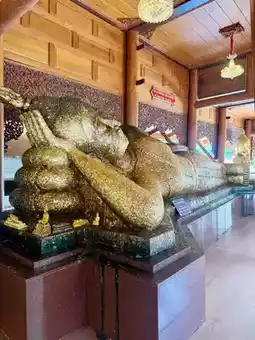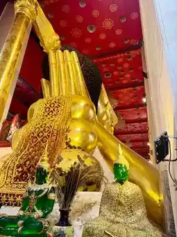 🕉️ This temple is not only a spiritual center for the city's residents, but it's also believed that paying homage and offering silk robes to the Reclining Buddha will bring good fortune, protection, and advancement.