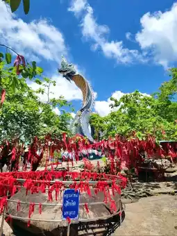 Pu Sri Mukda, a Naga statue located on the temple's stone courtyard.