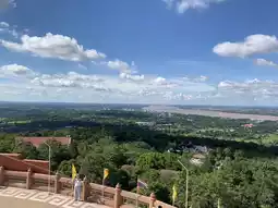 The Great Buddha, "Phra Chao Yai Kaew Mukda Sri Trairat," a large Buddha image in meditation posture, sits atop the mountain and is revered by the people of Mukdahan.