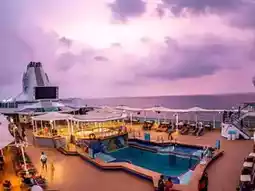 ✅ The Ship: Mid-sized but glam (704 cabins, 12 decks)—think Bollywood-themed parties, a casino, and a pool with a DJ.