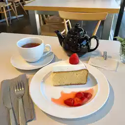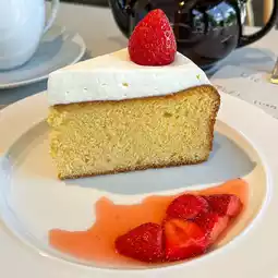 Victoria Cake is an eat-in only menu item. The cake is a tall sponge cake with a thick layer of cream and strawberries on top 🥰.