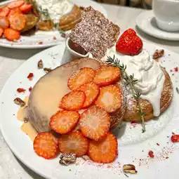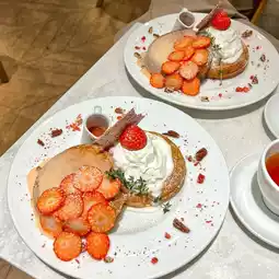 The atmosphere inside was peaceful and cozy, perfect for a laid-back tea time. We ordered the strawberry and condensed milk pancakes, and they were as gorgeous as they were delicious! The vibrant colors and cute presentation were definitely Instagram-worthy.