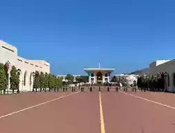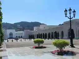 The main building of the palace consists of four golden and blue pillars, which looks gorgeous. The palace is designed in a modern Islamic architectural style, facing the Gulf of Oman, with neatly trimmed flower gardens and luxurious white marble government buildings on both sides of the avenue. The garden is beautiful for taking photos and checking in
