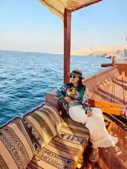 Take a traditional Omani dhow and cruise around Muscat Bay landmarks: Portuguese castles, the blue and white Al Alam Palace, and hotels on the cliffs. When the sun sets into the Gulf of Oman, standing on the deck, the entire sea is dyed golden red, as beautiful as a dream.