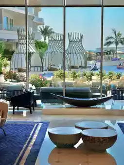 During our stay in Muscat, Oman, we chose The St Regis Al Mouj Muscat Resort. This Muscat St. Regis hotel has a great design aesthetic and has only been open for just over a year. It's not far from the airport, with a sunken lobby that offers expansive views of the pool and beach. The geometric patterns and modern minimalist lines create an impressive blend of Arabian elements with contemporary style. The rooms are spacious and bright, and when you open the window, the sea is right there—living by the ocean with blue as far as the eye can see creates the perfect vacation atmosphere!