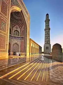 • Majestic Dome & Minarets: The mosque’s most iconic feature is its large turquoise-blue dome surrounded by four elegant minarets.