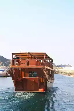To fully immerse yourself in the sunset, you must try cruising on an Omani traditional single-mast triangular sailboat (Dhow)! The wooden hull carries a faint scent of sandalwood, the boatman offers tea and snacks, and the sea breeze instantly blows away the heat.