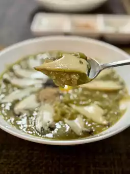 This is a special dish among abalone porridges, and is a luxurious menu that uses plenty of abalone meat. The special abalone porridge is popular at this restaurant, and sliced abalone meat is beautifully arranged in a rich green porridge made with dissolved abalone liver.