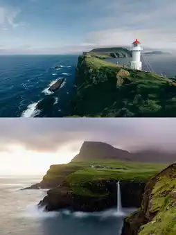 🗺️ Eysturoy and Streymoy Islands: These two islands are separated by a narrow strait. Driving along the winding mountain roads, you'll be immersed in pastoral landscapes, rugged coastlines, towering cliffs, and sights like Fossá Waterfall, the tallest in the Faroe Islands.⛰️ From the summit of Slættaratindur, the highest peak, you can enjoy panoramic views of all the islands.