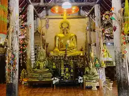 Wat Si Pho Chai Saeng Pha is located in Ban Saeng Pha, Na Haeo District, Loei Province. It is an ancient temple over 400 years old, built in 2090 at the same time as the Ban Saeng Pha community. The temple's ordination hall has a distinctive architecture similar to Wat Chiang Khong in Luang Prabang, Lao PDR. Inside is the statue of Luang Pho Phet, in the Mara-Vijaya posture, Lan Xang art style. The atmosphere around the temple is quiet, suitable for making merit and taking pictures, especially in the rainy season when the fog covers the area, creating a special beauty.