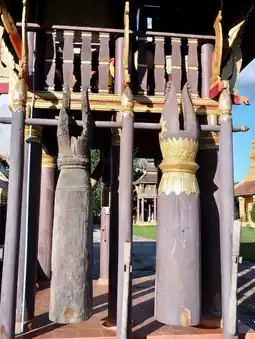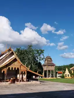 * Ancient Sim and Murals: The temple boasts an ancient wooden Sim (church) that remains intact. Inside, beautiful murals depict the life of the Buddha, crafted by local craftsmen.
