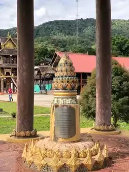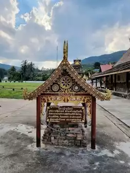 The main Buddha image, Luang Pho Yai, is enshrined within the Sim, a Lan Xang-style Buddha image in the Mara-Vijaya posture, revered by the locals for a long time.