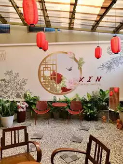 The shop's Chinese-style decor gives you the feeling of being at a cafe in China. Before becoming Xin Coffee, it used to be a gold shop for over 52 years. The decor blends modern elements with a touch of vintage.
