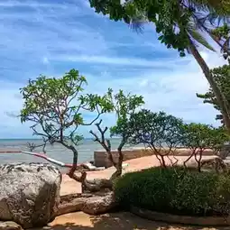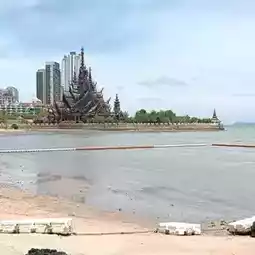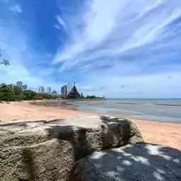 The private beach at Garden Sea View Resort is a favorite spot for many. The view from here offers a close-up view of the Sanctuary of Truth, offering a truly stunning and breathtaking view. The fine sandy beach offers a relaxing environment for swimming, walking, or simply relaxing on a hammock. It's not crowded, and nearby are large rocks for stunning photo opportunities. There's also a beachside cafe with a fantastic atmosphere.