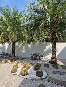 The outdoor area is a cactus garden with many corners for taking pictures.