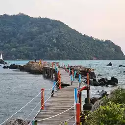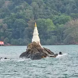 The Chedi Klang Nam Viewpoint, Ban Hua Laem, is the location of the pier of an old coastal fishing village. It is located in Ban Hua Laem, at the tip of Ao Khung Kraben Cape. Tourists can see the unique local lifestyle of this fishing village. And because it is located at the tip of the bay, it is quite convenient to go fishing. The viewpoint is near the fishing pier of Ban Hua Laem, with a convenient bridge down to the sea. The highlight here is the old white chedi located on a rock in the middle of the sea. The villagers say that this chedi is about 200 years old. It is said that it was built to be a spiritual anchor for fishermen in this area, to make their business and fishing better. The recommended time to come is in the evening, around 5:00 p.m. - 6:30 p.m., to watch the sunset in the evening. There is a very beautiful sea view.