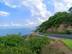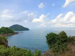 When visiting Chanthaburi, don't miss the chance to admire the beauty of Thailand's longest coastal road, stretching 111 kilometers. The viewpoint at Noen Nangphaya is located on a hill by the sea, near Khung Wiman Beach and the estuary of Khung Kraben. This coastal road runs through Chanthaburi, from the northernmost to the southernmost seaside of the province. On the left, you'll see the deep blue sea reflecting sunlight, while on the right, the road is flanked by mountains and the ocean. It's recommended to visit in the early morning or late afternoon when the weather is cooler. Around the area, you'll find shops, cafes, and stalls offering food and souvenirs to enjoy or take home.