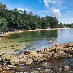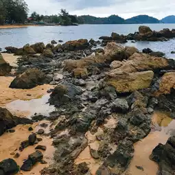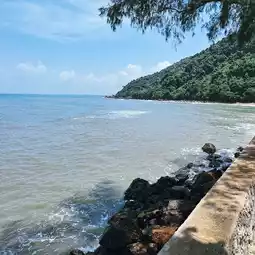 🌊 Another must-see landmark in Chanthaburi Province is Hin Krong Viewpoint, located in Sanam Chai Subdistrict, Na Yai Am District, Chanthaburi Province. This viewpoint is located north of Khung Wiman Beach. Most visitors to Khung Wiman head to the Noen Nang Phaya Viewpoint, which is located on the opposite side of Hin Krong Viewpoint, as it's a different turn. 😄😄 The atmosphere here is wonderful, with a cool breeze, a sandy beach, and beautiful rock formations. It's relatively quiet on weekdays, with fewer people, as most tourists come in the evening to watch the sunset. 🌥️ There's a large parking lot here, making it a popular spot for resting or for easy access to small boats. There are also vendors, though not many. On weekdays, there are hardly any vendors. 😄😆 Therefore, this is another beautiful viewpoint. If you visit, we highly recommend that you experience the peaceful atmosphere, listening to the crashing waves and the sounds of nature at least once in your life. You won't be disappointed! 🥰👍🏻