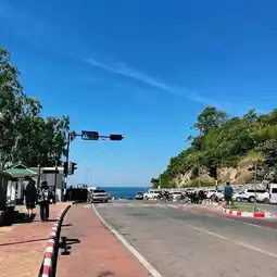 🏞 This is the most scenic spot on Chalerm Burapha Chonlathit Road. It's a winding, two-lane road that slopes up a gentle slope parallel to the coast. The azure blue sea contrasts with the sparkling, clear waters, creating a uniquely beautiful scenery. This route is perfect for driving. There's a viewpoint where you can park and take beautiful photos. If you visit during the rainy season, you'll find it very quiet. There are fewer tourists, allowing you to find beautiful photo spots to your heart's content. There's also a camping area.