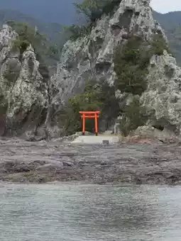 A small hotspot in Katsuura, this is essentially a torii gate standing in the middle of the sea. It seems you can walk to the island during low tide (but don't attempt it lightly~).
