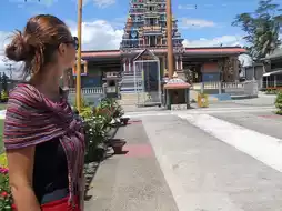It's work stopping to have a look at the temple given the intricate paintwork and art on the ceiling of the temple - though you can only walk around the outside and not through the temple so not all of that can be seen. They have sarongs to borrow, to accommodate the dress code. It's relatively cheap to enter, and you do have to be barefoot to walk around. There was a bit of scaffolding about, but imagine there is always some part of the temple paintwork being maintained. It is a self-guided experience. Probably best to visit in sunshine if possible, the colour would stand out more vibrantly.
