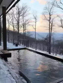 Hot spring is this hotel. The open-air hot spring combines natural landscape with hot spring culture. You can sit in the pool, overlook the Alps, and feel the nourishment of snow and hot springs.