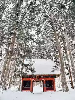 The road to Togakushi Shrine is surrounded by forests and centuries-old trees, and you can take pictures of the spectacular forest scenery
