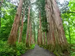 This sacred path lined with cedar trees over 400 years old exudes a solemn atmosphere. The approximately 2-kilometer-long trail allows visitors to experience both nature and history as they walk through.