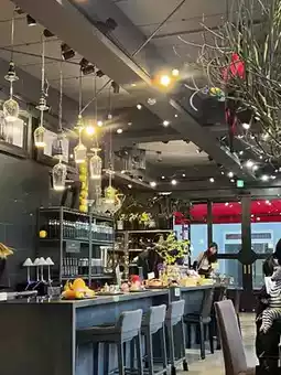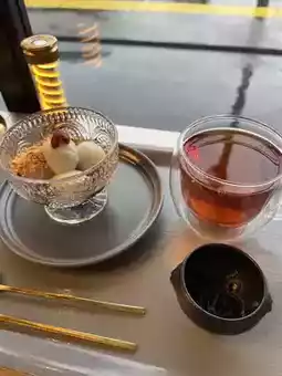 The interior of the cafe blends seamlessly with the flower shop, featuring a natural, warm décor. Natural light streams in through the windows, creating a soft glow in the afternoon. The seats are spaced far apart, making it ideal for conversation with friends or reading alone.