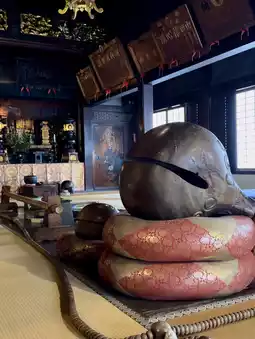 Inside the temple grounds, you are greeted by a "flower water fountain" in the shape of this year's zodiac animal, the snake🐍🌸 The colorful presentation in the cold weather left a lasting impression on me, and I couldn't help but want to take a photo📸✨ And what really blew me away was the huge lantern! Its presence, visible from the approach to the temple, is so unforgettable that you will never forget it once you see it. It further enhances the solemn atmosphere of the entire temple.