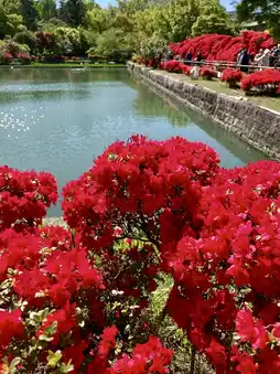 This spring, I visited Nagaoka Tenmangu Shrine and was completely wowed by the stunning Kirishima azaleas in full bloom! The entire garden was painted bright red — it honestly felt like stepping into a different world. The vibrant flowers set against the traditional shrine buildings made for some seriously gorgeous photos.