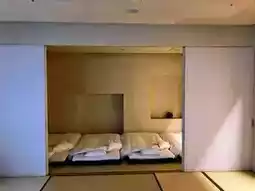 Guests can stay in a Japanese-style suite, featuring tatami flooring, washi-covered walls and ceilings, and a bathroom made of Oki wood sandstone, creating a relaxed, serene, and luxurious Japanese space. The room spans over 70 square meters, with a nightly rate including breakfast at approximately 9,000 TWD per person on weekdays.