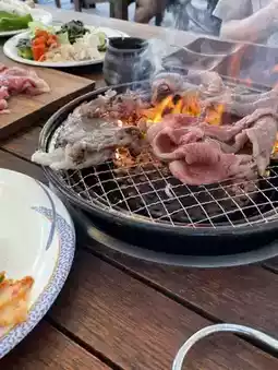 A buffet style where you can take as much of whatever you like from various meats, salads, kimchi, and cold noodles onto your plate. All-you-can-drink alcohol and juice! We enjoyed the BBQ in the best mood while enjoying the sea breeze. #islandresort #Nagasaki #Iojima #BBQ #resorthotel #activity #spring0yentrip #Nagasakitrip #Nagasakisightseeing